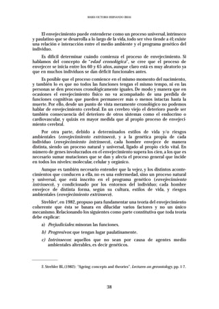 Este documento discute varias teorías sobre los mecanismos biológicos del envejecimiento desde una perspectiva fisiológica. Explica que probablemente no hay una única causa del envejecimiento, sino una acumulación de factores interactivos a nivel celular y de los tejidos. Luego resume algunas teorías estocásticas (basadas en factores ambientales aleatorios) como la del error catastrófico y la del entrecruzamiento, así como teorías no estocásticas como la evolucionista. Finalmente