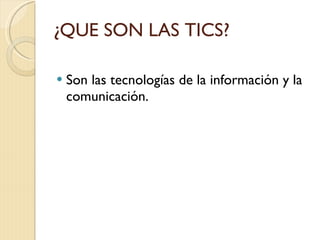 Las TICs en la enseñanza de idiomas tienen ventajas como permitir el aprendizaje interactivo e impartir nuevos conocimientos, pero también tienen desventajas como la inequidad y división. Las TICs se caracterizan por ser innovadoras y creativas, y se relacionan con frecuencia con Internet e informática. Son herramientas que facilitan el aprendizaje de idiomas aunque no son un fin en sí mismas.