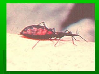 La enfermedad de Chagas es causada por el parásito Trypanosoma cruzi y transmitida principalmente por insectos hematófagos como la vinchuca. Afecta a aproximadamente 18 millones de personas en el mundo y causa unas 50,000 muertes por año. Los síntomas incluyen daño cardiaco que puede provocar insuficiencia cardíaca. No existe una cura, pero el tratamiento con medicamentos como el nifurtimox y el benzonidazol puede eliminar la infección si se administra en las primeras fases de la enfermedad