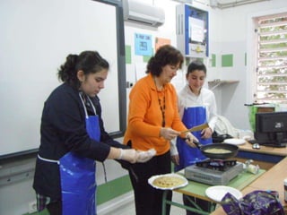 El documento proporciona información sobre la celebración de La Chandeleur en 2011 en el I.E.S. Guadiana para estudiantes de 1o E.S.O. de la sección bilingüe durante el curso escolar 2010-2011.