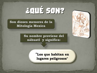 Los chaneques eran dioses menores de la mitología mexicas que habitaban en bosques y selvas para protegerlos, y se decía que podían causar enfermedades y la muerte o hacer que la gente pierda su espíritu si no se les rendía culto a través de rituales y amuletos.