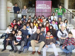 El documento describe un intercambio entre el IES Domingo Valdivieso de Mazarrón, España y el Collège Jules Ferry de Cazouls-lès-Béziers, Francia del 27 de enero al 3 de febrero de 2008. Los estudiantes españoles se alojarán en familias francesas y visitarán varias ciudades como Montpellier, Toulouse, Arles y Béziers, así como atracciones como las Grutas de las Damiselas, una bodega, el anfiteatro de Arles y el Canal du Midi.