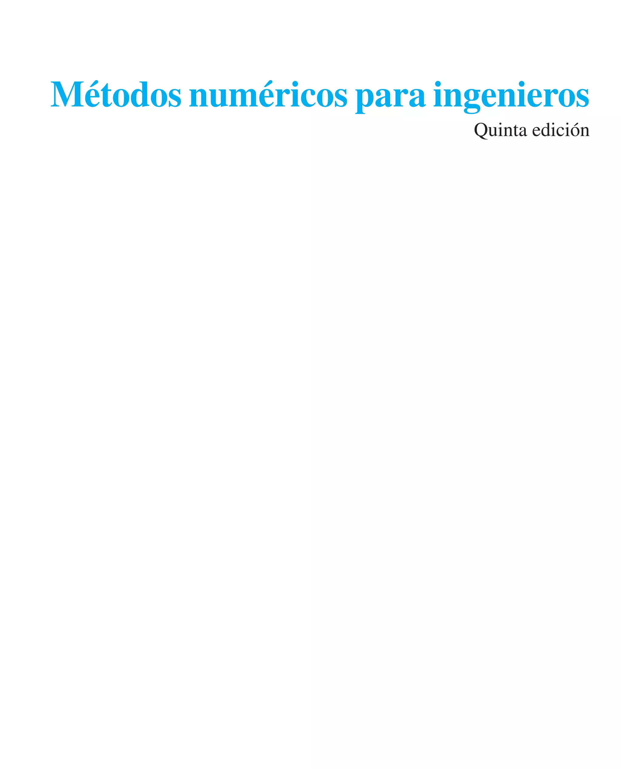 Este documento presenta el libro "Métodos numéricos para ingenieros", quinta edición. El libro cubre diversos métodos numéricos utilizados para resolver problemas de ingeniería y está escrito por Steven C. Chapra y Raymond P. Canale. Incluye capítulos sobre resolución de ecuaciones no lineales, sistemas de ecuaciones lineales, interpolación, ajuste de curvas, integración y diferenciación numérica, y métodos para resolver ecuaciones diferenciales ordinarias.