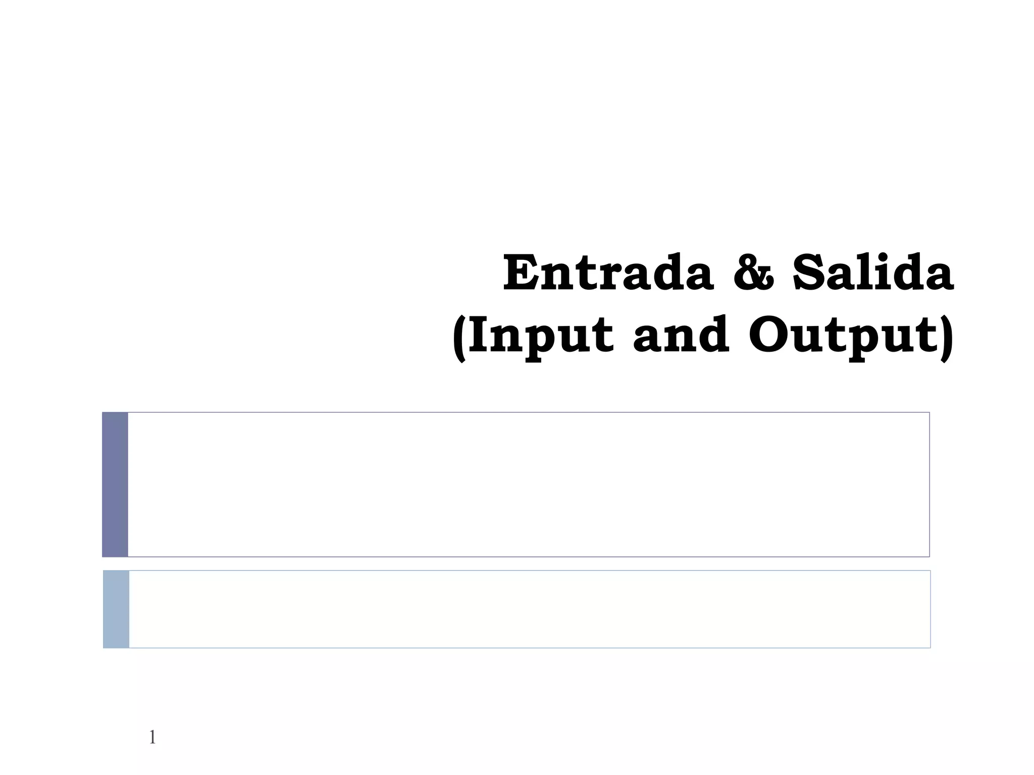 El documento habla sobre la entrada y salida de datos en computadoras. Brevemente describe algunos métodos de entrada como teclados, mouse, escáneres y micrófonos. También cubre dispositivos de salida como monitores, impresoras y bocinas. Explica cómo los usuarios proveen datos a la computadora y reciben información procesada de regreso.