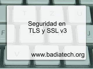 Este documento presenta una asociación cultural tecnológica llamada BadiaTech con el objetivo de promover la cultura del software libre, el asociacionismo en tecnologías de la información, y la innovación tecnológica a través de proyectos y formación. También explica los protocolos TLS y SSL que proveen comunicaciones seguras por internet y menciona algunas normas ISO relacionadas con la seguridad de la información.