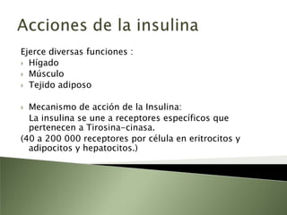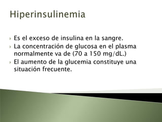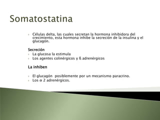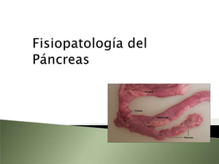 Este documento resume la fisiopatología del hígado, la vía biliar y el páncreas. Describe las funciones del páncreas exocrino y endocrino, incluidas las enzimas pancreáticas y su regulación hormonal. También explica las enfermedades del páncreas como la pancreatitis aguda y crónica, y trastornos como la hiperinsulinemia y la diabetes mellitus.