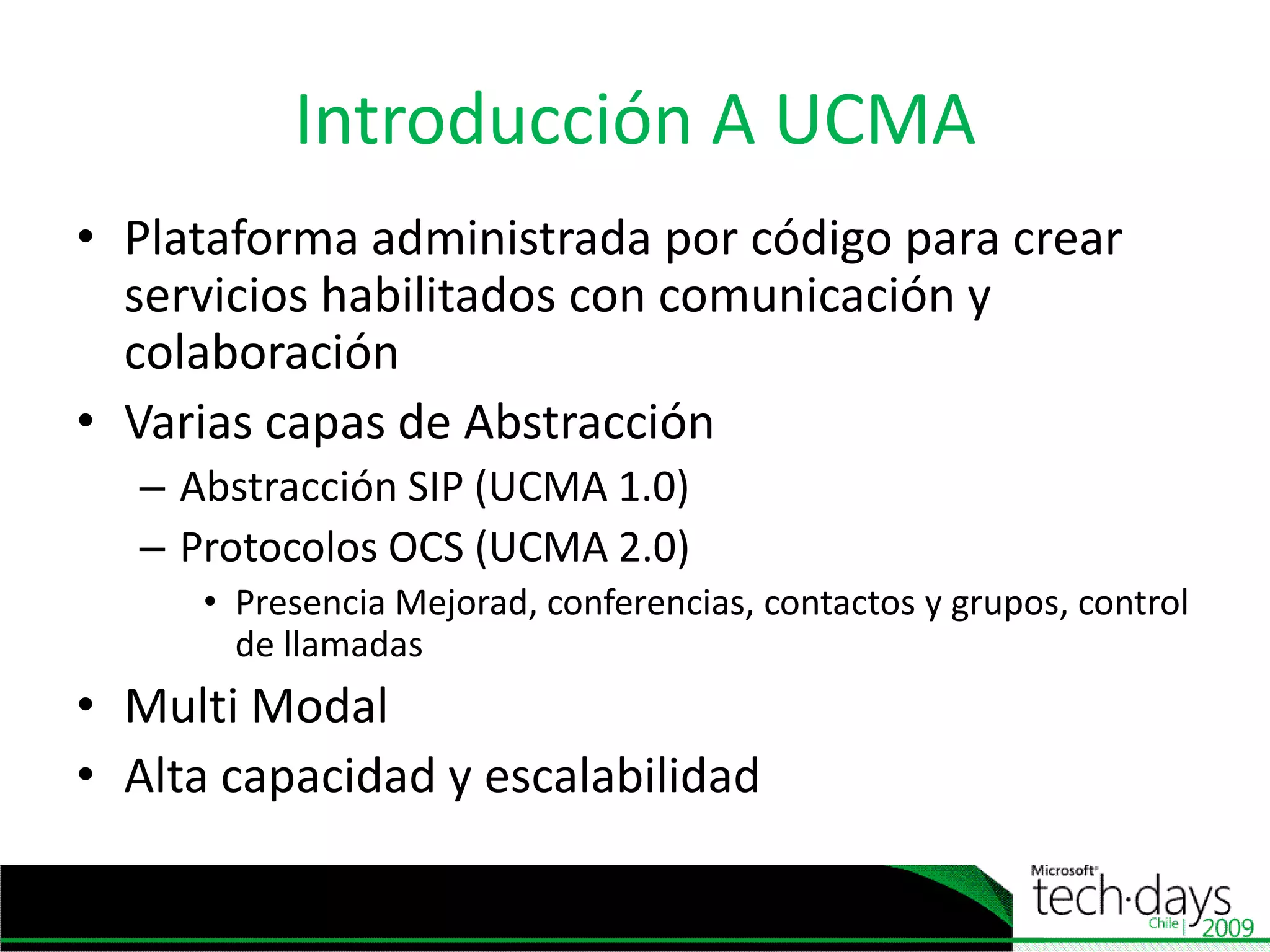 Este documento describe cómo integrar servicios de comunicación y colaboración como Microsoft Office Communications Server (OCS) en aplicaciones de negocios. Explica las capas de abstracción en OCS, incluida la Plataforma administrada por código UCMA que permite crear servicios habilitados para comunicación. También presenta ejemplos de cómo OCS se puede usar en entornos médicos, de atención al cliente y para automatizar tareas como notificaciones y administración de equipos.