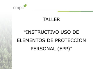 Este documento proporciona información sobre los elementos de protección personal (EPP), incluyendo una definición de EPP, la responsabilidad de las empresas y los trabajadores, y una clasificación y descripción de varios tipos comunes de EPP como cascos, anteojos, protectores auditivos, guantes, botas y más. El documento enfatiza la importancia de usar los EPP adecuados para cada tarea y usarlos correctamente para minimizar el riesgo de accidentes.