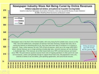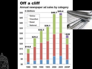 El documento analiza los desafíos y oportunidades que enfrentan las redacciones en la era digital, enfatizando la necesidad de aprovechar audiencias y tecnologías móviles en la producción de contenido. También se presentan modelos de monetización de medios en línea y se discuten principios de colaboración y participación en la publicación. Destaca la importancia de adaptarse a los cambios tecnológicos y las expectativas del consumidor para revitalizar la relación con los lectores.