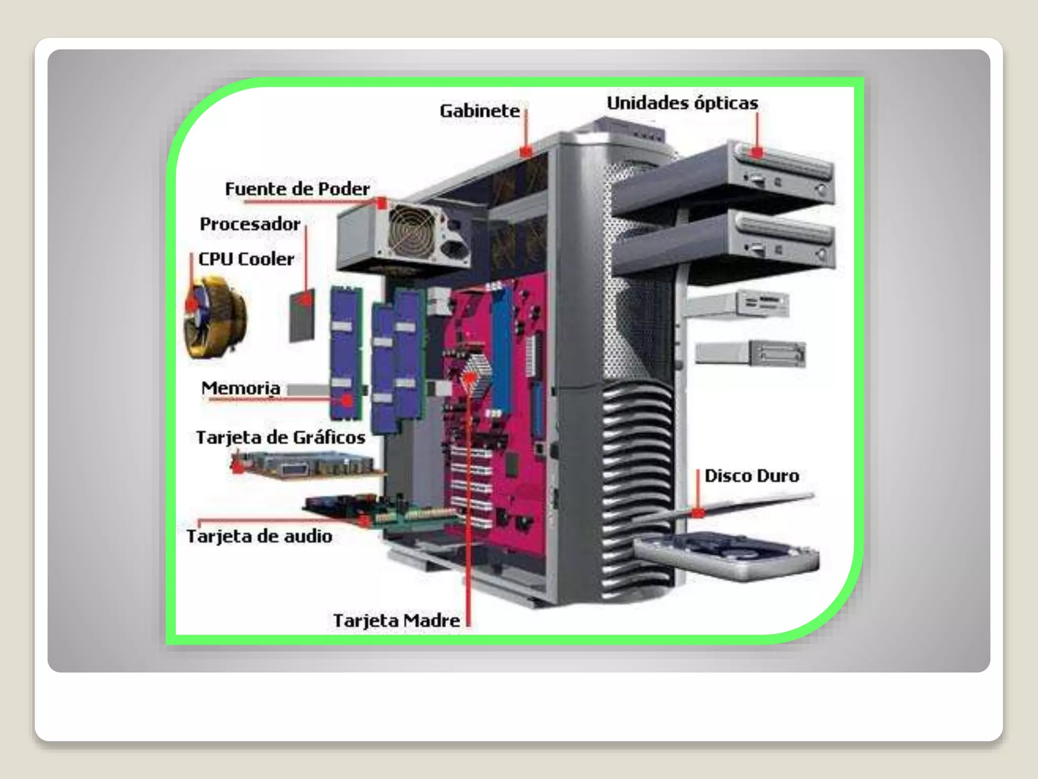 El documento describe los diferentes tipos de chasis de computadoras, incluyendo chasis de mesa, torre, mini torre, laptop, notebook y palmtop. Explica que el chasis sirve para sostener los componentes internos de la computadora como la tarjeta madre, unidades de disco y fuente de poder. También menciona algunas de las funciones del chasis como permitir el montaje de los componentes y proporcionar espacio para ellos.