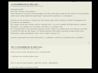 El documento define el chat como un sistema de comunicación en línea en tiempo real a través de texto, audio y video que permite conversaciones entre personas en diferentes ubicaciones geográficas a través de salas o canales de chat. Señala algunos posibles perjuicios del chat como la rotura del lenguaje, el encajonamiento frente a las pantallas y la posibilidad de difundir información falsa. También sugiere que el chat puede distorsionar la identidad de una persona al crear un ego virtual diferente al habitual.
