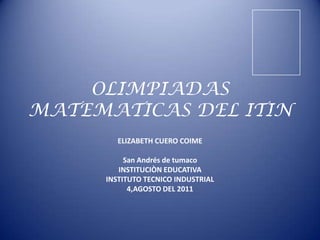 Las olimpiadas matemáticas miden el desempeño académico de los estudiantes de diferentes instituciones educativas en Tumaco. Su misión es que los estudiantes experimenten nuevos conceptos matemáticos. Se seleccionan 5 estudiantes de cada grado para participar representando a su institución.