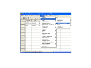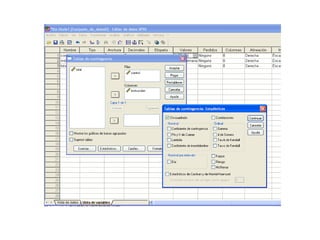 Este documento resume los pasos para realizar una prueba de chi cuadrado de Pearson. Explica cómo calcular el estadístico chi cuadrado a partir de valores observados y esperados en una tabla de contingencia, y cómo usarlo para probar la bondad de ajuste, homogeneidad o independencia entre variables. También incluye un ejemplo completo de cómo aplicar la prueba chi cuadrado para determinar si el control prenatal de gestantes depende de su nivel educativo.