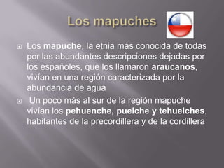 Este documento resume la historia y política de Chile desde la época de los mapuches hasta la actualidad. Los mapuches vivían en el sur de Chile y coexistieron con los españoles hasta el siglo XVII. En el siglo XVI, los españoles conquistaron el territorio y fundaron ciudades. En el siglo XIX, Chile luchó por su independencia de España y estableció un gobierno republicano. En el siglo XX, Chile experimentó períodos de inestabilidad política y económica, dictadura militar, y transición hacia la democracia