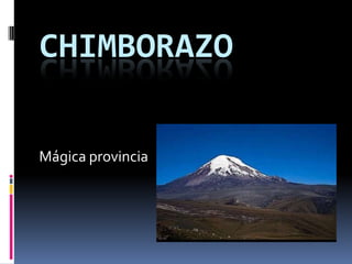 La provincia de Chimborazo en Ecuador lleva el nombre de la montaña más alta del país, el Chimborazo. La ciudad de Riobamba, capital de la provincia, se encuentra en los Andes a 2754 metros sobre el nivel del mar, cerca de varios volcanes como el Chimborazo. Riobamba fue fundada en 1534 y brevemente sirvió como capital de Ecuador después de su independencia.