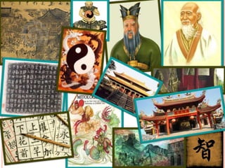 El documento presenta la filosofía de China antigua. El grupo 622 investigó las principales escuelas de pensamiento chinas como el taoísmo. Amanda Miroslava se encargó de la presentación en PowerPoint, mientras que Gloria Stephanie y Carmina Vianey realizaron la investigación. Alejandra Isabel dará la exposición oral. El documento incluye tres fuentes bibliográficas sobre filosofía china y taoísmo.