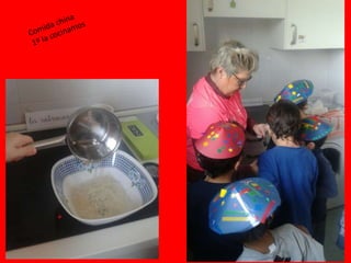 El documento describe varias actividades relacionadas con China, incluyendo organizar vocabulario de un cuento en un diagrama de Venn en 2D, componer un chino con tangram en 3D, y cocinar y probar comida china usando palillos chinos para sentirse como chinos por un día.