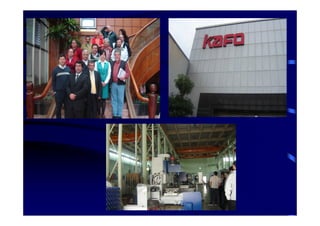 Este documento resume las visitas realizadas por una misión empresarial chilena a Taiwán, Hong Kong y China para conocer proveedores de maquinaria metalmecánica. En Taiwán visitaron ferias y empresas fabricantes líderes mundiales en mecanizado CNC. En Hong Kong conocieron el rol del consejo de comercio en facilitar negocios y el parque tecnológico Ciberport. Finalmente, en China pudieron ver la concentración de industria en el delta del Río Perla, con fabricantes de maquinaria en Cantón.