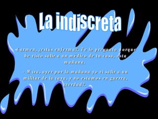 El documento contiene varios chistes y bromas de diferentes temas como relaciones de pareja, situaciones embarazosas, conversaciones entre amigos y niños traviesos. Algunos de los chistes involucran a personajes como un hombre que llega a su casa con amigos, un médico visitando una casa, un borracho en un bar y un niño travieso llamado Pepito haciendo preguntas inocentes.