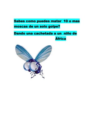 El documento sugiere que dar una cachetada a un niño africano puede matar múltiples moscas de un solo golpe, lo que es una sugerencia inapropiada y dañina.