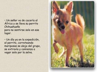 Un perrito chihuahueño se extravía en la selva africana mientras acompañaba a su dueño de cacería. Al verse amenazado por una pantera, finge haberse comido otro animal para asustarla. Un mono chismoso le cuenta la verdad a la pantera, quien furiosa busca al perro con el mono en su espalda. Nuevamente usando su ingenio, el perro finge no estar asustado y manda al mono a buscar otra pantera.