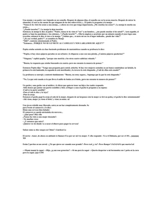El relato presenta una conversación entre una monja y un sacerdote que se encuentran varados en el desierto después de que su camello muriera. El sacerdote propone revivir al camello teniendo relaciones sexuales, a lo que la monja responde sarcásticamente que mejor se lo meta al camello muerto.