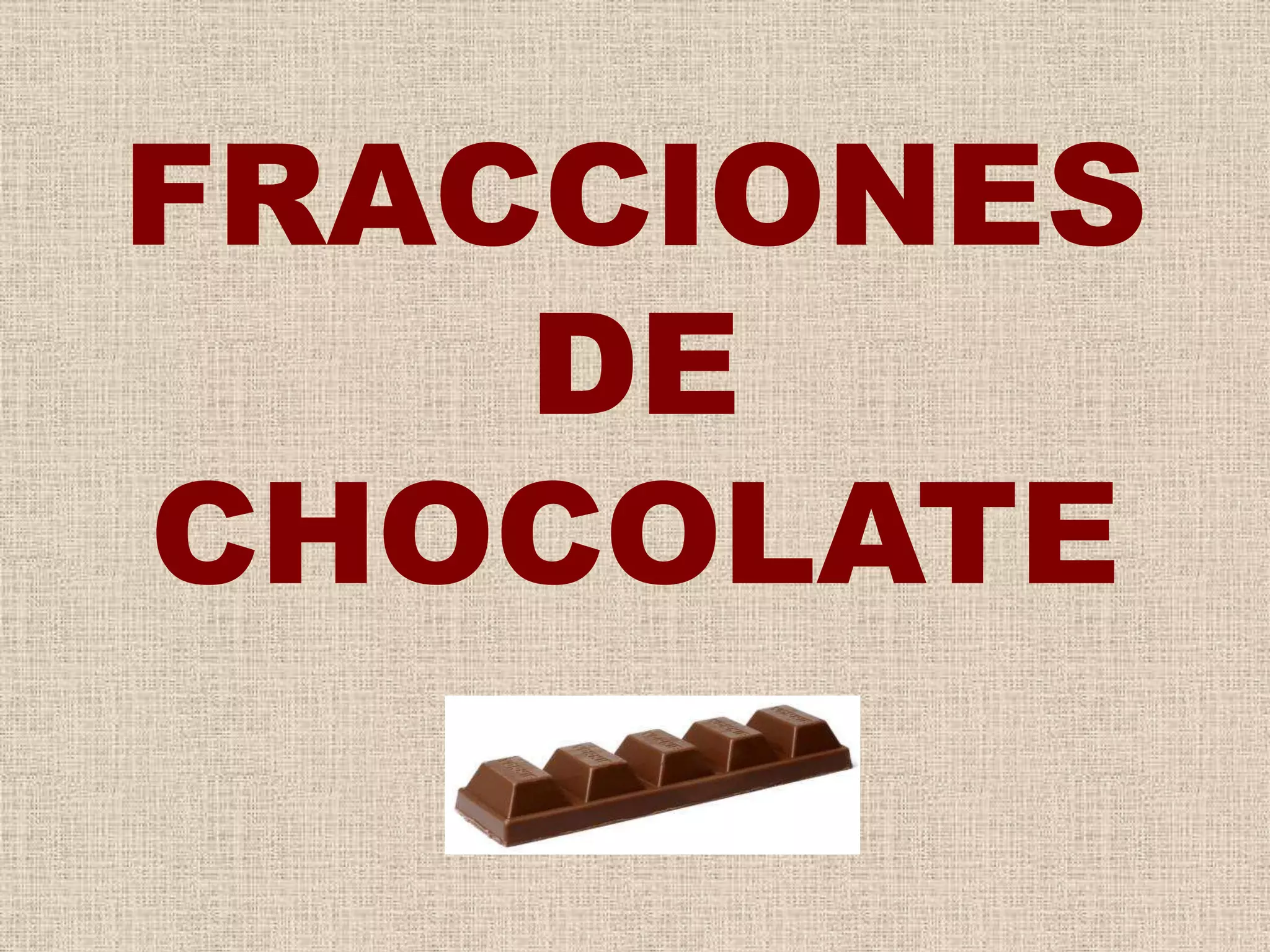 El documento presenta una serie de preguntas sobre fracciones que representan diferentes porciones de una tableta de chocolate dividida en piezas de diferentes colores. Se piden expresar con fracciones la cantidad de chocolate en la tableta original, en una porción, en la mitad izquierda y la cantidad que falta. También se solicita expresar las fracciones de pastillas de diferentes colores con respecto al total.
