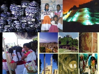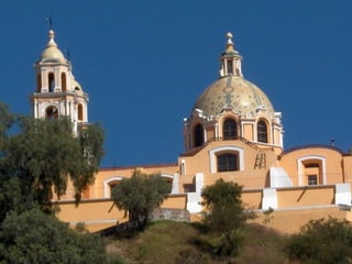 Cholula se encuentra a 7 km de Puebla y fue un importante centro ceremonial dedicado al dios Quetzalcóatl en la época de la conquista. La ciudad se desarrolló entre los años 800-200 a.C. alrededor de una laguna y contenía la Gran Pirámide, una de las de mayor volumen en América. Grupos toltecas se establecieron en Cholula tras 36 años de peregrinaje y la ciudad pasó a llamarse Tollán-Cholollan. Bajo el dominio tolteca, Cholula se convirtió en el