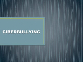 El ciberacoso o ciberbullying se define como el acoso psicológico entre iguales a través de Internet, teléfonos móviles y videojuegos online. Se manifiesta a través de chantaje, vejaciones, insultos e imágenes comprometedoras publicadas sin consentimiento con el fin de avergonzar o perjudicar a la víctima entre su grupo social. A diferencia del bullying tradicional, el ciberbullying es especialmente grave debido al anonimato, la falta de percepción del daño causado y la adopción de roles falsos