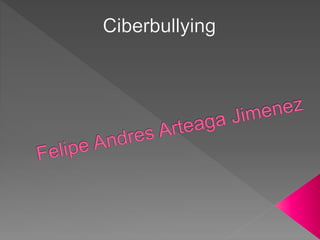 El ciberacoso, o ciberbullying, se define como el uso de Internet, teléfonos móviles y videojuegos en línea para acosar psicológicamente a otros. Se considera ciberbullying cuando alguien es humillado en las redes sociales o hostigado en un juego en línea. El anonimato en Internet y la falta de percepción directa del daño causado, junto con la adopción de roles imaginarios, convierten al ciberbullying en un grave problema.