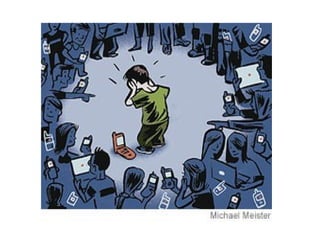 El documento trata sobre el ciberacoso (ciberbullying). Explica que es el uso de medios digitales y redes sociales para acosar psicológicamente a otras personas de forma repetitiva. Las víctimas de ciberbullying pueden sufrir daños psicológicos como ansiedad, aislamiento y problemas familiares. El documento enfatiza la importancia de pedir ayuda a un adulto si se es víctima de ciberacoso y evitar participar en este tipo de comportamientos.