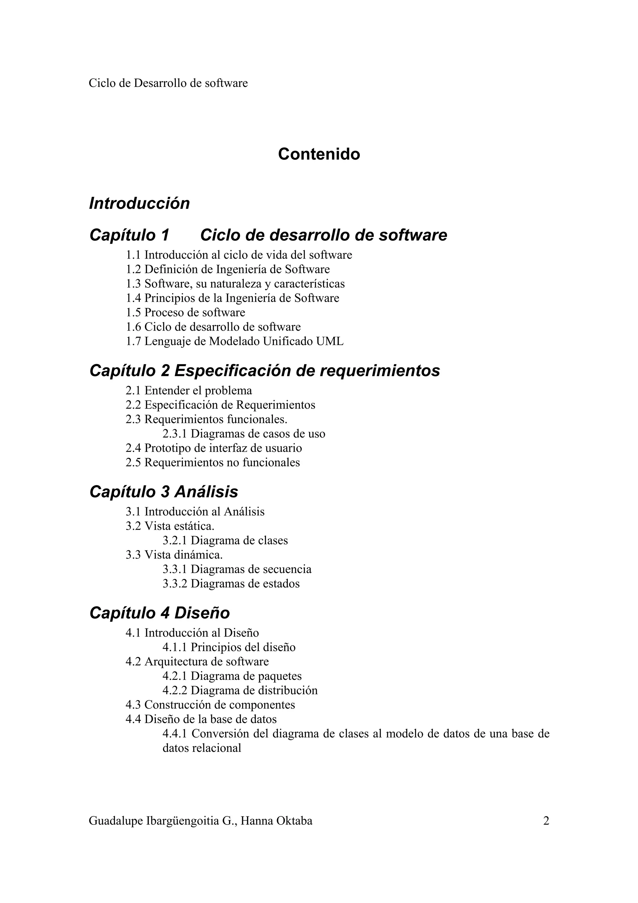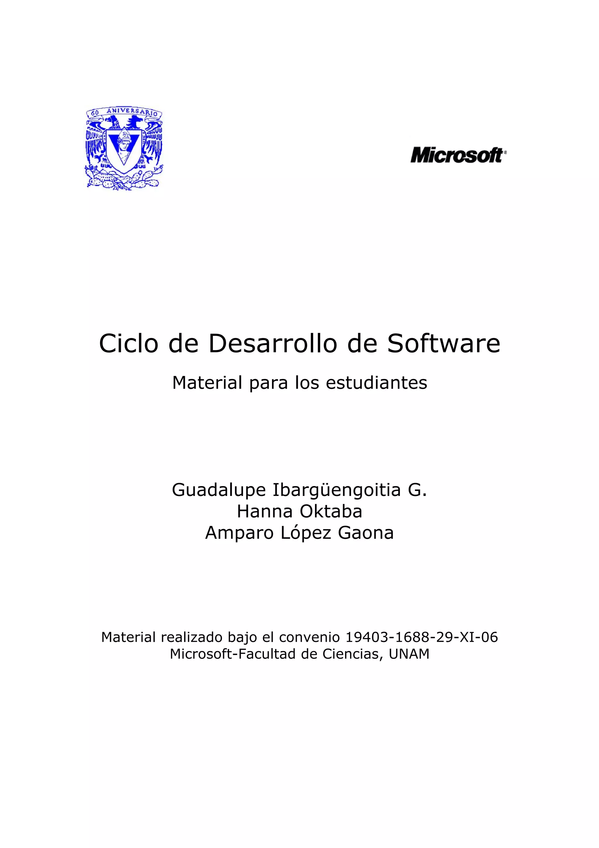 El documento ofrece un material educativo sobre el ciclo de desarrollo de software, abarcando desde la ingeniería de software hasta la construcción de manuales. Se divide en capítulos que tratan temas como la especificación de requerimientos, análisis, diseño, construcción, integración y pruebas del sistema, proporcionando conceptos fundamentales y diagramas UML para un enfoque práctico. Dirigido a estudiantes con conocimientos de programación, busca establecer los principios y métodos necesarios para la creación de software de calidad.
