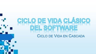 El documento describe el ciclo de vida en cascada, también conocido como modelo lineal secuencial. Este método de desarrollo de software se compone de siete fases ordenadas y secuenciales: requisitos, diseño, codificación, pruebas, implementación, mantenimiento y obsolescencia. Cada fase produce documentación que es entregada a la siguiente hasta completar el desarrollo del software.