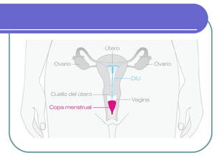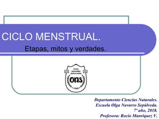 El documento resume las cuatro etapas del ciclo menstrual, incluida la ovulación, la etapa postovulatoria y la menstruación. También discute los mitos y verdades sobre la menstruación, como que las mujeres pueden bañarse durante la regla y que los tampones no afectan la virginidad.