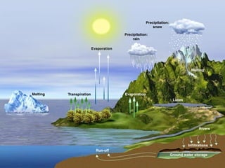 El ciclo del oxígeno involucra tres pasos principales: 1) Las plantas producen oxígeno como subproducto de la fotosíntesis y lo liberan a la atmósfera. 2) Los animales y otros organismos utilizan el oxígeno durante la respiración celular y lo convierten de nuevo en dióxido de carbono. 3) El oxígeno se mueve entre la atmósfera, los océanos, la tierra y los seres vivos como parte integral de los ciclos biogeoquímicos globales.