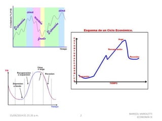 El documento trata sobre conceptos económicos como demanda, desempleo, stock, precios, producción, inversión, ingresos e incluye las palabras clave recesión, impuestos y gasto público. El autor enumera estos términos en varias páginas sin dar más detalles.