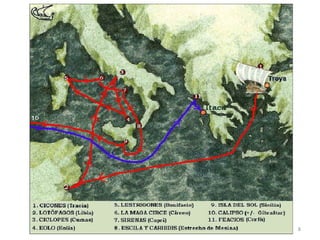 El documento describe a dos monstruos mitológicos, Escila y Caribdis. Escila era una mujer transformada por la maga Circe en un monstruo con tres o seis cabezas de perro o serpiente como venganza por rechazar al dios marino Glauco. Caribdis era una ninfa transformada por Zeus en un monstruo que tragaba y vomitaba agua tres veces al día como castigo por robar bueyes.
