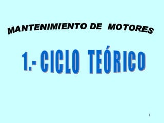 Este documento describe los ciclos teóricos y reales de los motores de combustión interna, comparando los ciclos ideal y real de Otto y Diesel. Explica las diferencias entre los procesos de admisión, compresión, combustión, expansión y escape en los ciclos teóricos e ideales frente a los reales, debido a fugas, transferencia de calor y otras pérdidas. También resume las ventajas e inconvenientes de los motores Diesel frente a Otto.