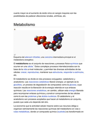 El documento trata sobre el ácido úrico. En tres oraciones:
