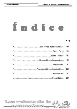 Este documento presenta información sobre los cinco reinos biológicos. Brevemente describe el reino Monera, incluyendo que están formados por una sola célula y pueden ser autótrofos o heterótrofos. Luego presenta información sobre tres organismos del reino Protista: la ameba, el paramecio y la euglena. Finalmente incluye algunas preguntas para aplicar los conocimientos aprendidos.