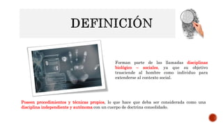 La ciencia forense extiende una amplia gama de sub-ciencias que utilizan técnicas de las ciencias naturales para obtener pruebas penales. El médico forense debe proporcionar información clara y objetiva a las autoridades judiciales basada en evidencia médica, teniendo en cuenta la sensibilidad social involucrada en los casos forenses.