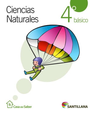 Este documento presenta el libro de texto "Ciencias Naturales 4o básico" que forma parte del proyecto "Casa del Saber". El libro contiene 5 unidades sobre diversos temas de ciencias naturales y cada unidad incluye objetivos de aprendizaje, evaluaciones iniciales y finales, y secciones para explorar los contenidos a través de observaciones, lecturas y experimentos. Además, incluye páginas especiales sobre habilidades, agenda y actividades complementarias.