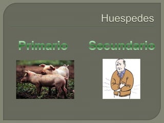 Los ciliados son protistas unicelulares que se caracterizan por tener cilios en su superficie, dos núcleos y realizar fagocitosis. El Balantidium coli es un ciliado parásito que se localiza en el intestino grueso humano y porcino, donde puede causar la enfermedad balantidiasis a través de la ingestión de quistes. Los síntomas incluyen diarrea con sangre y úlceras intestinales.