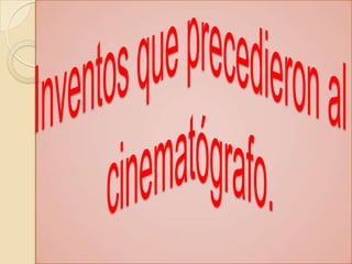 El documento resume la historia del cine desde sus orígenes hasta la actualidad, incluyendo importantes inventos, películas y figuras clave en su desarrollo. Comienza con dispositivos para proyectar imágenes como la cámara oscura y la linterna mágica, y continúa con los primeros formatos de películas y sonido. También describe la influencia de directores e innovaciones técnicas clave.