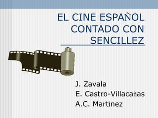 El documento resume brevemente la historia del cine en España, desde su llegada en 1896 hasta las primeras décadas del siglo XX. Destaca algunos hitos como la primera película rodada y la primera con argumento, así como importantes figuras como Segundo de Chomón, pionero de los efectos especiales, y directores como Benito Perojo y Luis Buñuel. También menciona a algunas de las primeras estrellas del cine español.
