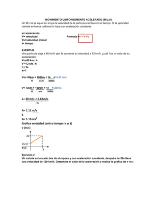 2) Movimiento uniformemente acelerado y cómo calcular la aceleración a partir de la velocidad inicial, final y el tiempo.