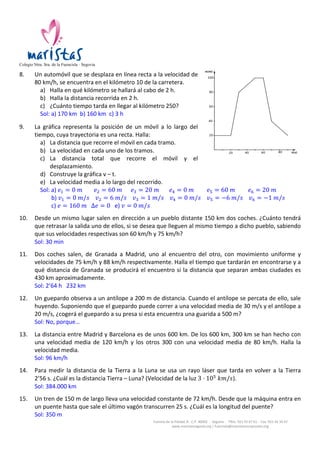 Este documento presenta 8 problemas de movimiento rectilíneo uniforme con sus respectivas soluciones. Los problemas involucran trenes, nadadores, lanchas y automóviles moviéndose a velocidades constantes entre puntos fijos y calculan variables como la posición, el tiempo de viaje y el punto de encuentro de los objetos.