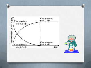 La cinética estudia la velocidad de las reacciones químicas y los factores que afectan dicha velocidad, como la naturaleza de los reactivos, la temperatura, la concentración de los reactivos y la presencia de catalizadores. La velocidad de una reacción depende de la frecuencia de colisión entre las moléculas de los reactivos, la cual aumenta con la temperatura, la concentración y la presión del sistema. Los catalizadores aceleran las reacciones sin formar parte de los productos finales.
