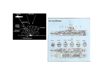 El documento trata sobre el ultrasonido, sus usos e imágenes médicas. Explica que el ultrasonido son ondas acústicas por encima del espectro audible que se usan en medicina, industria y para repeler insectos. También describe cómo funcionan los hornos de microondas calentando moléculas con agua y cómo los sonares activos y pasivos se usan para la navegación y detección militar y pesquera.