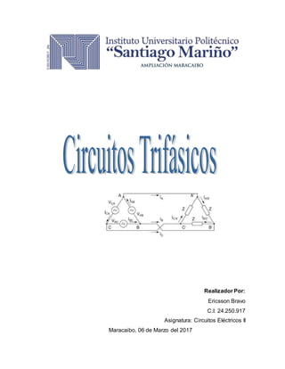 Este documento resume los conceptos básicos de los sistemas trifásicos, incluyendo las conexiones estrella y delta, los voltajes y corrientes de fase y línea, y cómo se comportan los sistemas balanceados y desbalanceados. Explica que un sistema trifásico consta de tres fases de alimentación de CA y puede conectarse en estrella o delta. Luego describe las diferencias en voltajes y corrientes para cada configuración y tipo de sistema, así como cómo se conectan las cargas balanceadas y desbalanceadas en estrella y delta.